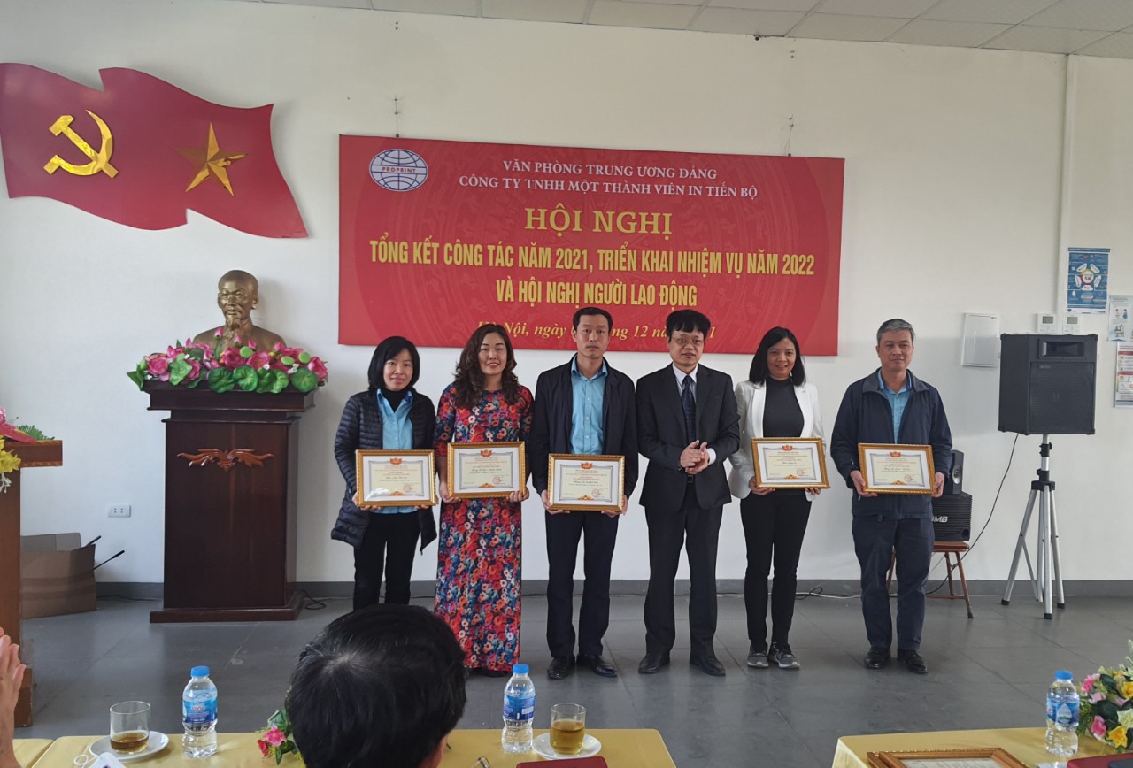 Tại hội nghị đã trao Bằng khen của Chánh Văn phòng Trung ương Đảng cho các tập thể, cá nhân đạt thành tích trong công tác phục vụ Đại hội XIII của Đảng; chứng nhận chiến sĩ thi đua cấp cơ sở cho các cá nhân; giấy khen của Chủ tịch Công ty cho các tập thể, cá nhân đạt thành tích trong năm 2021.