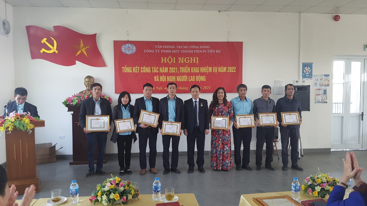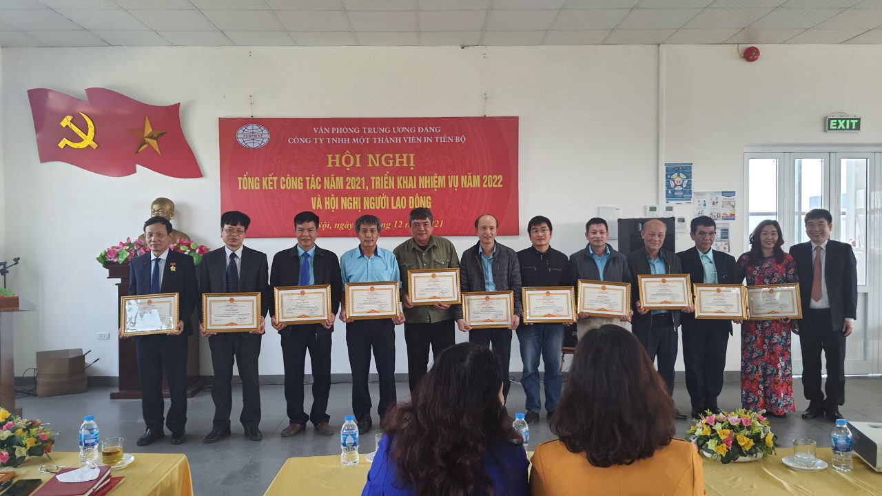 Sáng ngày 03/12/2021, tại Trụ sở Công ty In Tiến Bộ, Cụm công nghiệp Ninh Hiệp, Gia Lâm, Hà Nội, Công ty TNHH một thành viên In Tiến Bộ đã tổ chức Hội nghị tổng kết công tác chuyên môn, công tác đảng, công tác công đoàn năm 2021 và triển khai nhiệm vụ công tác năm 2022. Tới dự và chỉ đạo Hội nghị có các đồng chí: Hoàng Anh Tuấn, Phó Bí thư Đảng uỷ Văn phòng Trung ương Đảng, Cục trưởng Cục Lưu trữ; Cao Thị Mai Hồng, Phó Chủ tịch Công đoàn Văn phòng Trung ương Đảng; Vũ Lam Sơn, Vụ trưởng Vụ Tổ chức - Cán bộ, Văn phòng Trung ương Đảng; Nguyễn Đức Thanh, Bí thư Đảng ủy, Chủ tịch Công ty; Nguyễn Việt Tuấn, Phó Bí thư Đảng ủy, Giám đốc Công ty và các đồng chí Phó Giám đốc Công ty.